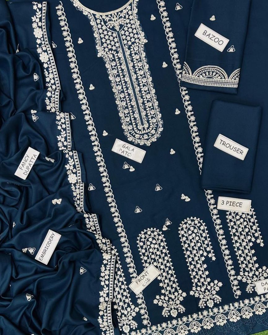 Bluebell Orchard Regal is crafted for women who adore deep, majestic hues paired with intricate ivory embroidery. Designed in a rich bluebell shade with detailed artisanal threadwork, this ensemble reflects regal elegance — perfect for winter soirées, daytime gatherings, and festive occasions.