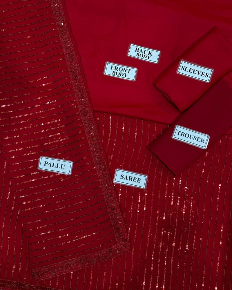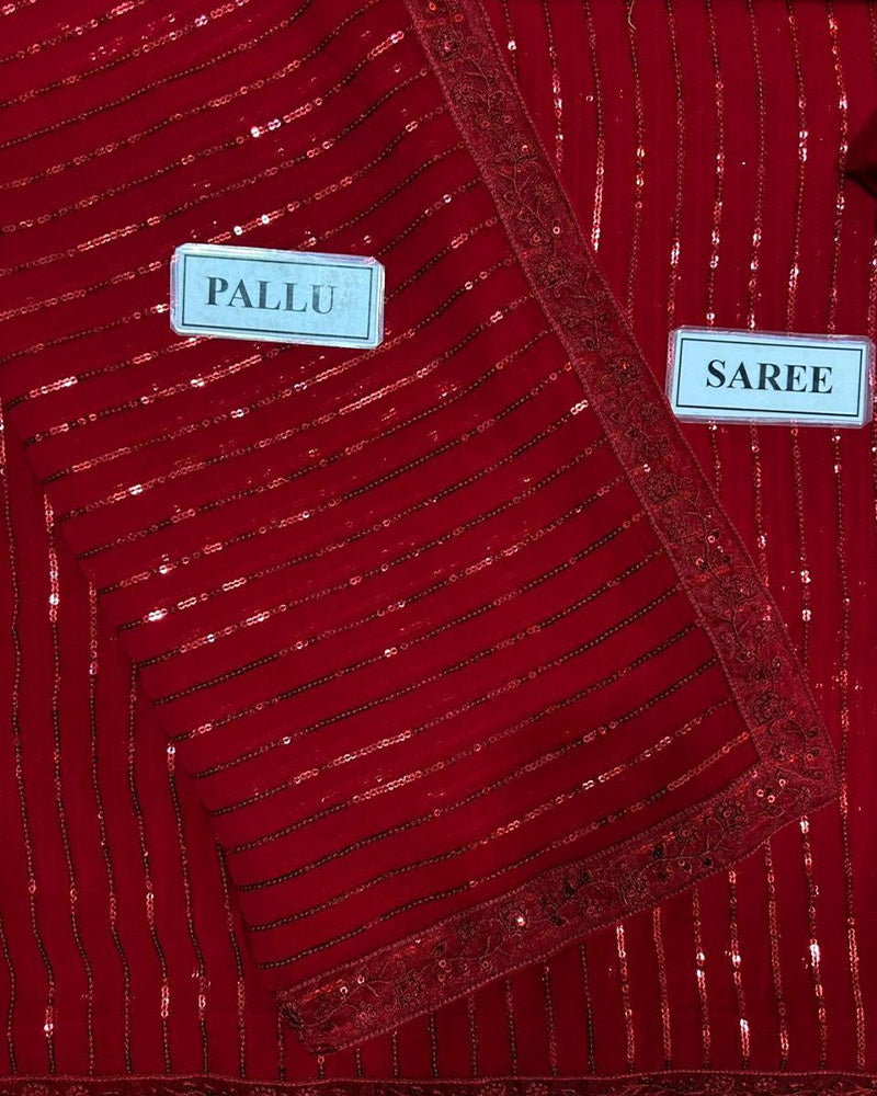 A timeless blend of elegance and sophistication, this semi pure chiffon embroidered saree is designed with intricate sequence work and paired with premium Shamos silk finishing. Perfect for formal occasions, weddings, and evening gatherings, this saree brings luxury and comfort together.