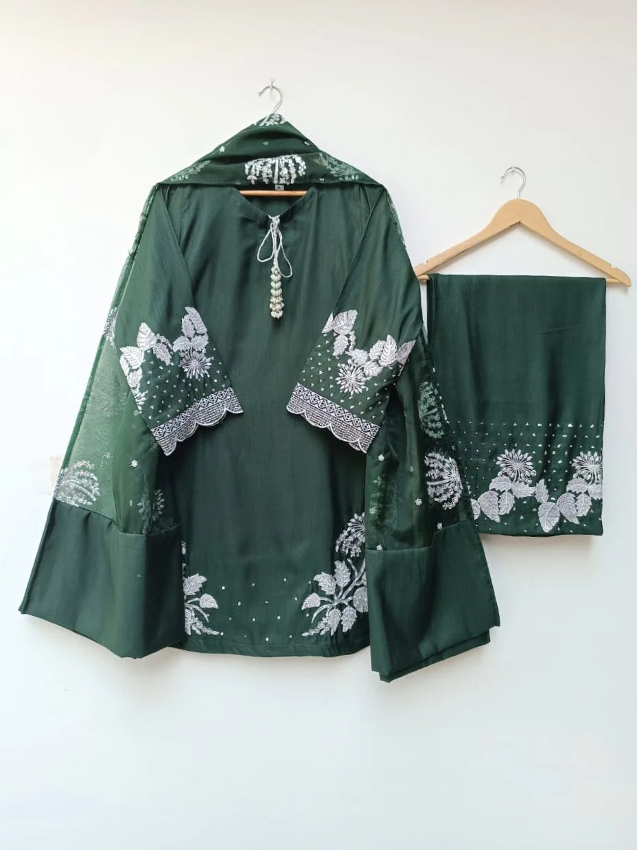 Gleam Blossom Luxe is crafted for women who adore refined elegance, delicate floral artistry, and a luminous touch of sophistication. Designed in multiple luxurious shades, this ensemble blends soft shimmer embroidery with graceful detailing—perfect for festive wear, gatherings, and elevated everyday style.