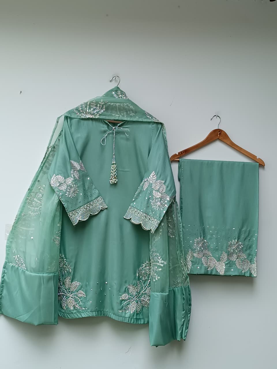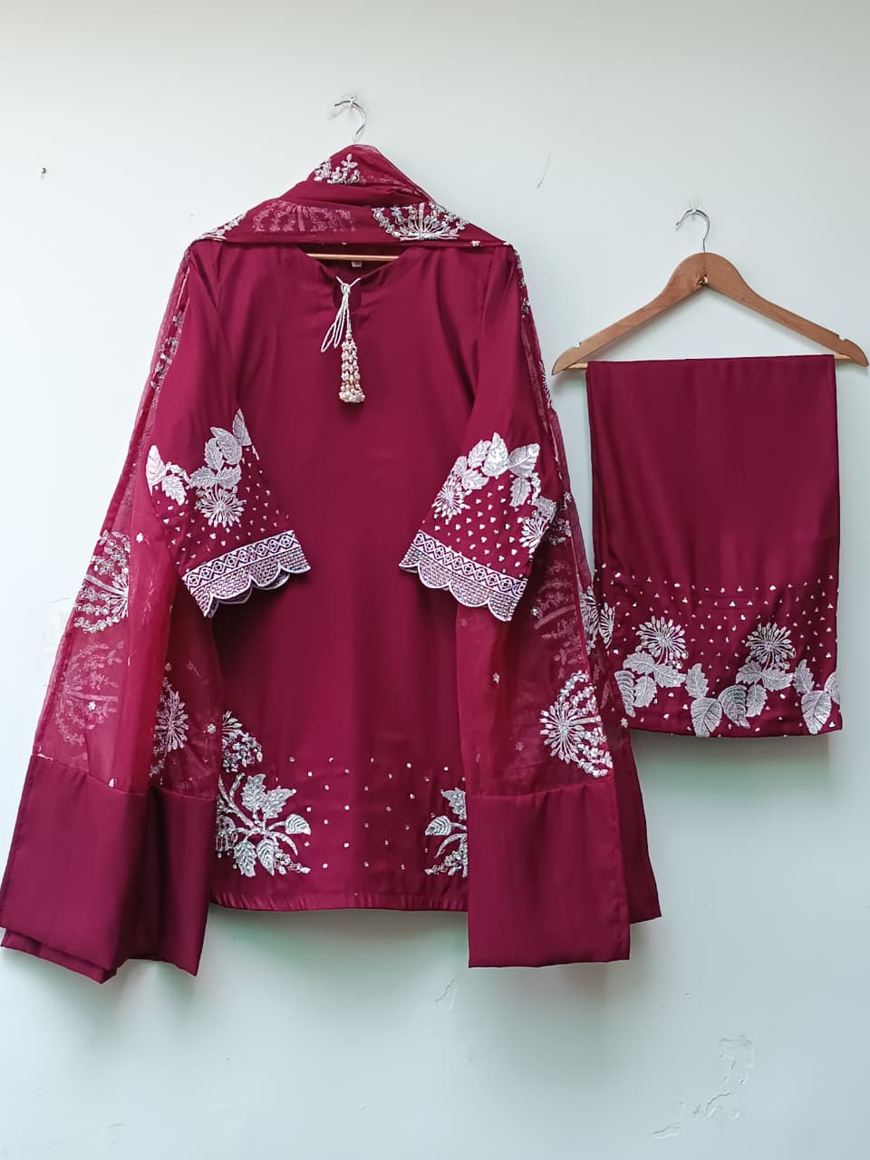 ▪ Organza dupatta featuring embroidered florals & fine detailing