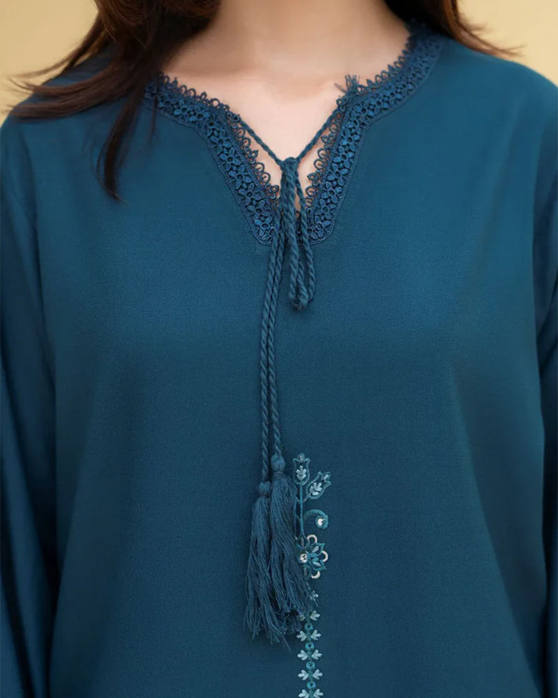 A soft and serene Dhanak co-ord in a subtle zinc shade — made for effortless grace and everyday sophistication. Perfect for chilly days when you want both comfort and charm.