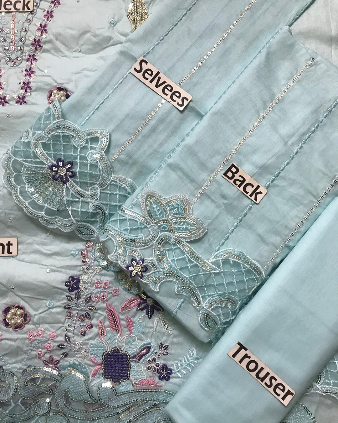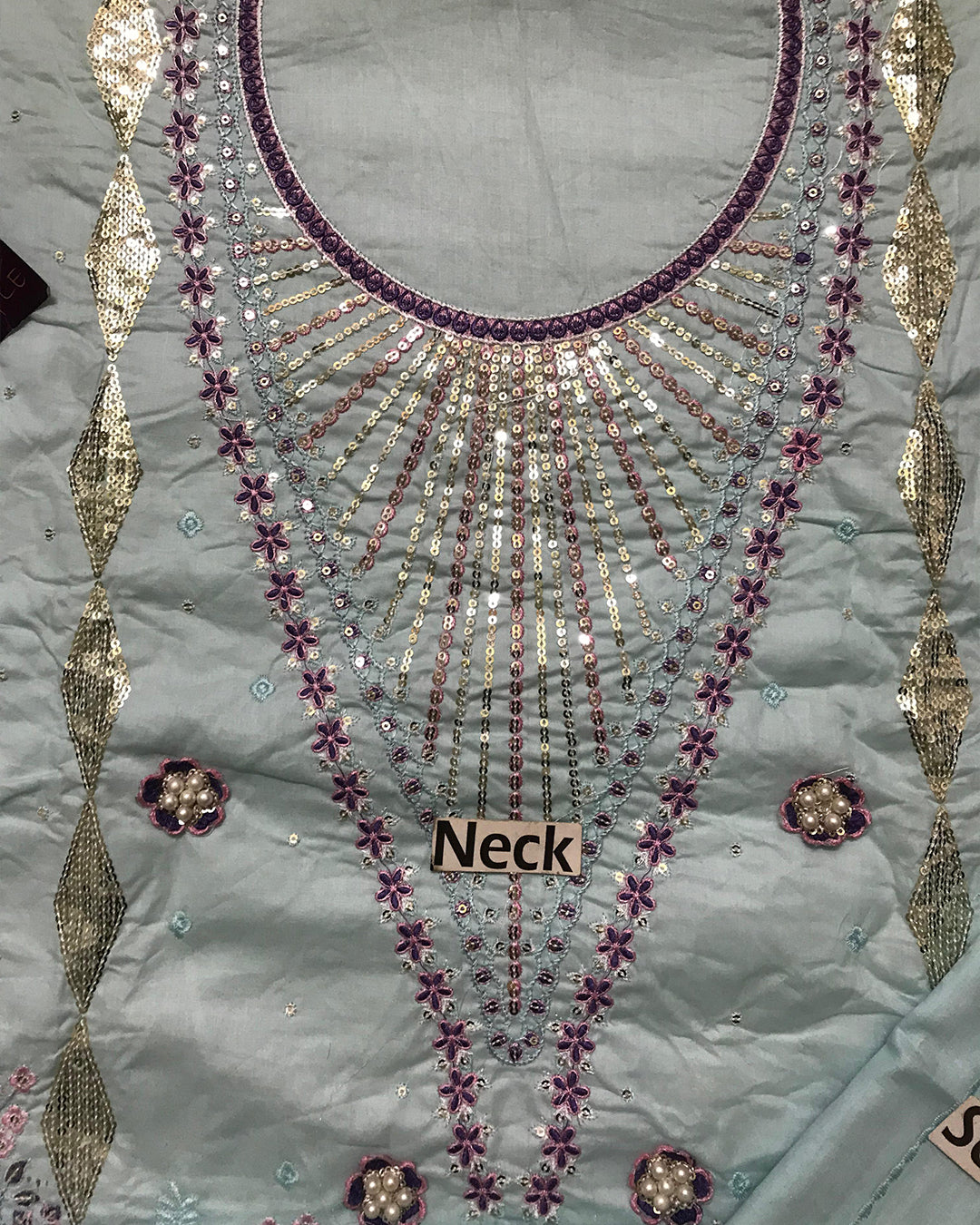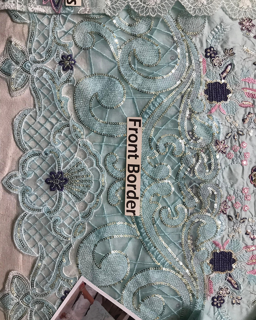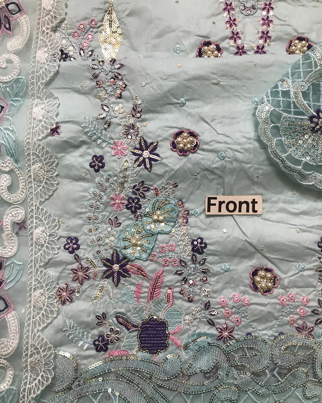 Fully heavy embroidered lawn front with pearls work and 3D flower work