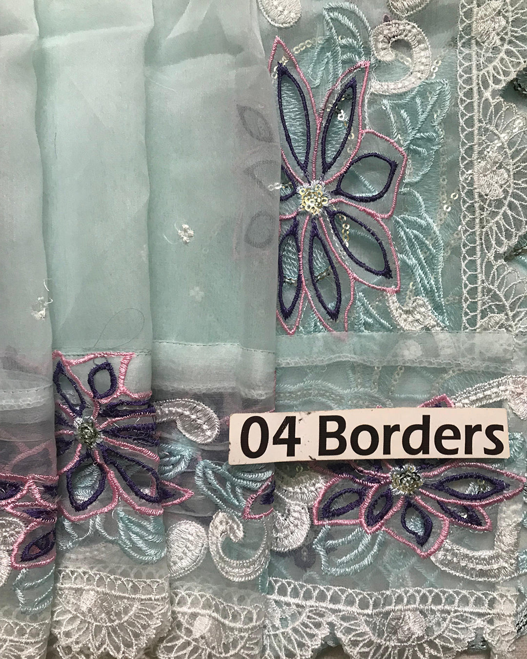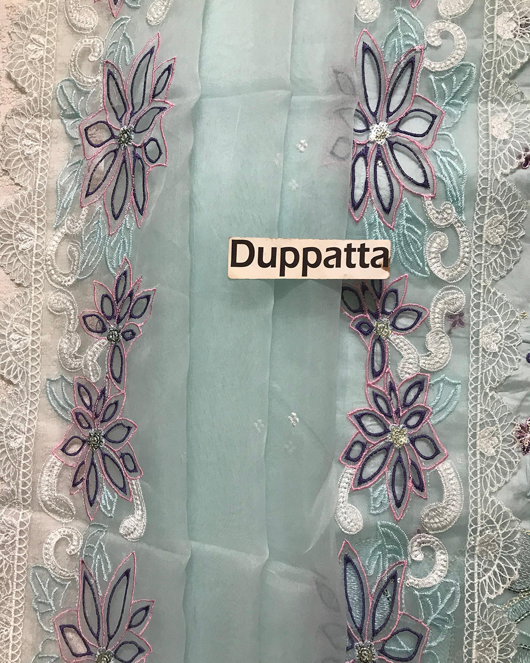 Heavy embroidered organza dupatta with 4-side cutwork borders & applique (ready-to-wear)