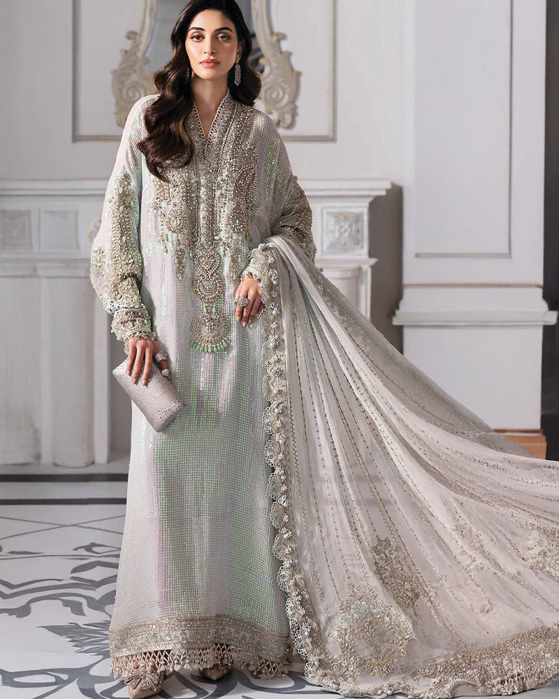 Introducing the Maria B from the latest chiffon collection. This luxury unstitched 3 piece suit is crafted with premium chiffon and intricate adda work, offering a designer look perfect for weddings, formal occasions, and festive wear.