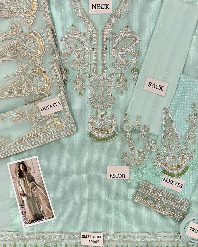 Chiffon embroidered front with complete sequence work (replica as original)