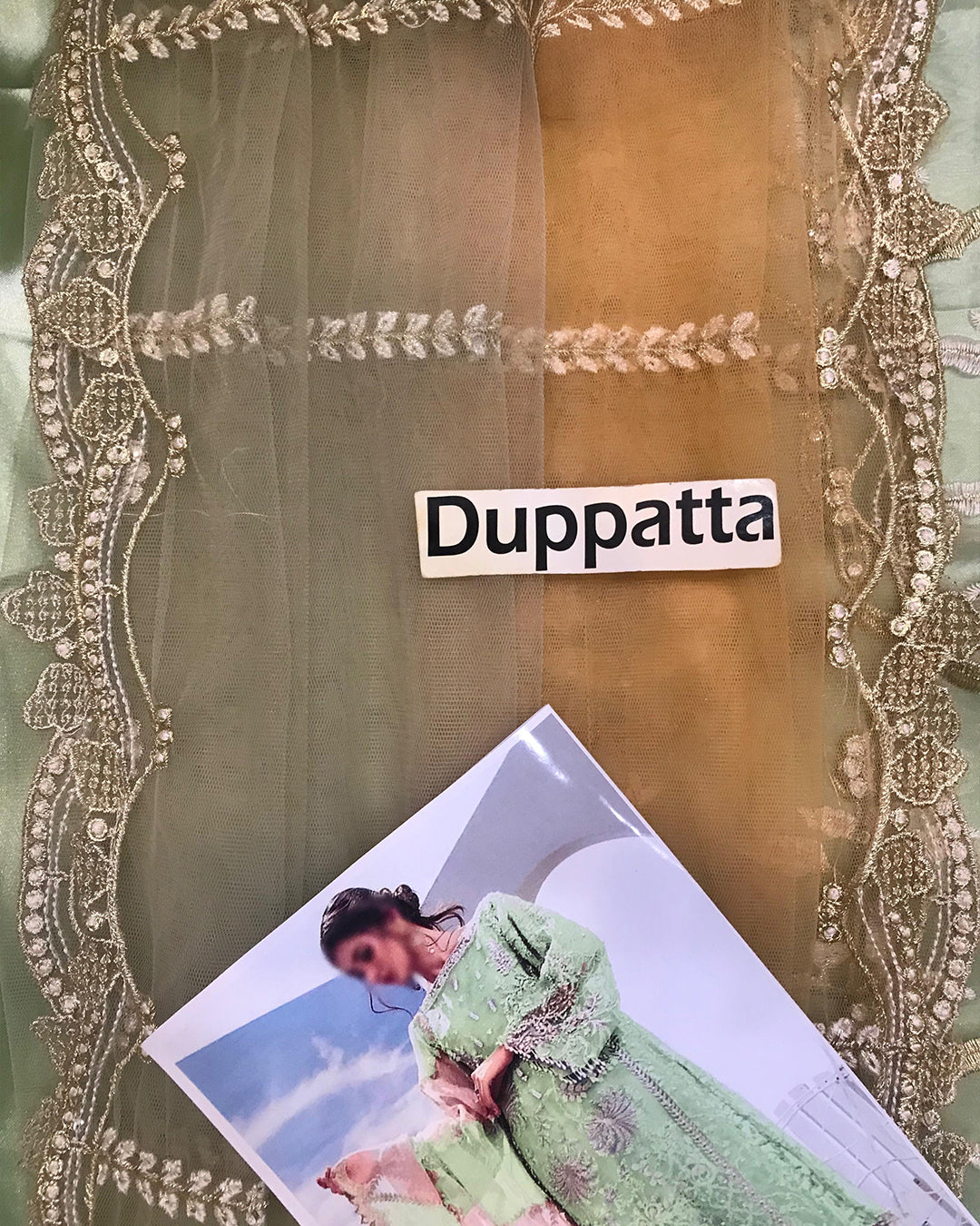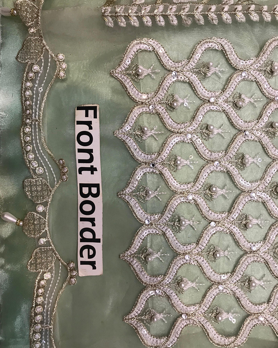 Heavy embroidered double-shaded net dupatta with 2 sides heavy pallu embroidered borders and hanging tassels