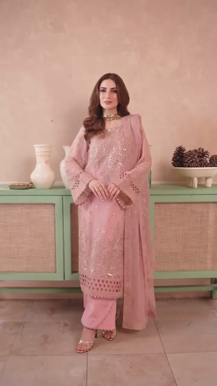 Rosy Blush Allure is crafted for women who adore soft femininity, delicate pastel tones, and timeless elegance. Designed in a soothing rosy-blush pink, this ensemble features intricate embroidery that brings subtle glamour while keeping the look refined and graceful. Perfect for daytime celebrations, intimate gatherings, and festive events, it delivers a beautifully polished aura with effortless charm.