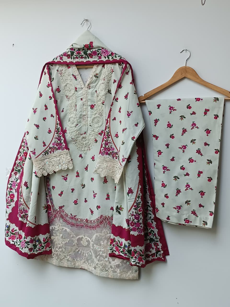 ▪ Khaddar dupatta adorned with beautiful rose-print artwork