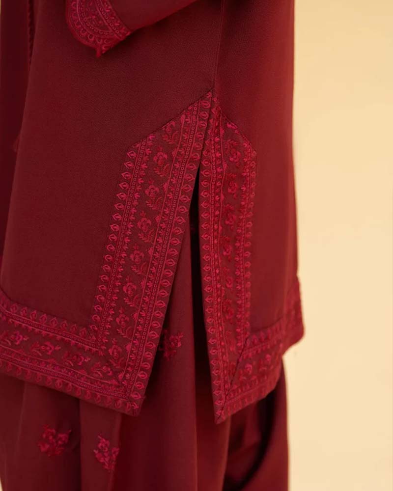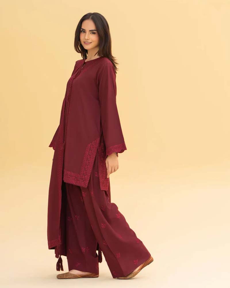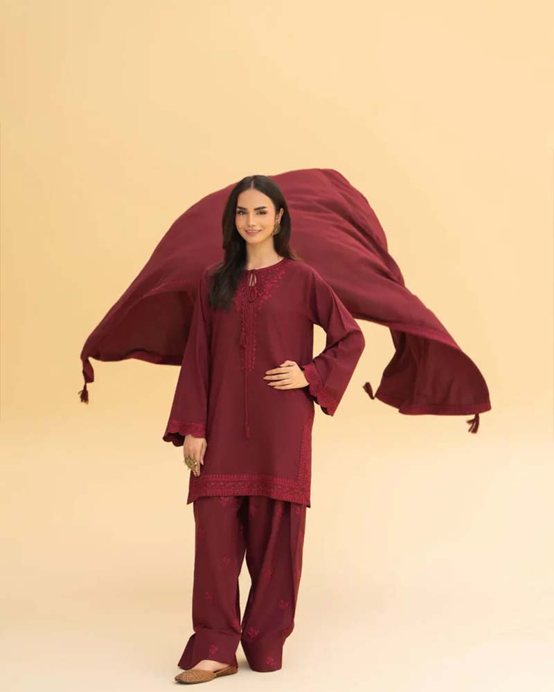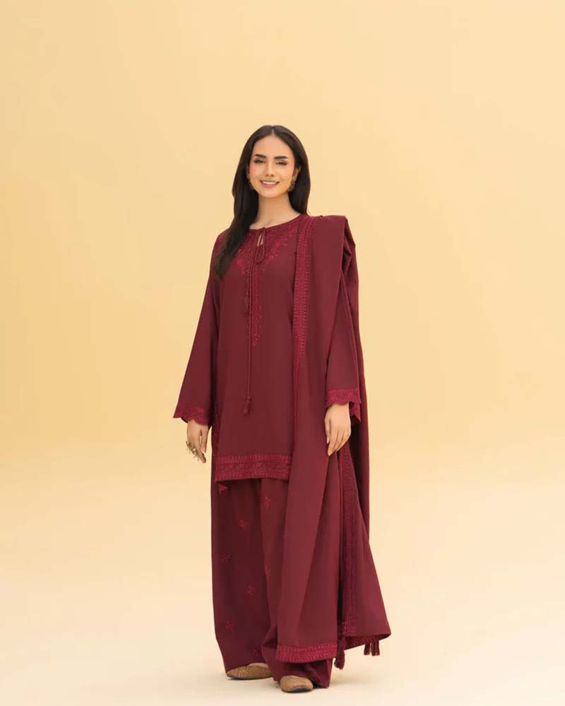 A graceful 3-piece set designed for cozy elegance — crafted from soft Dhanak fabric to keep you warm and stylish all season long.