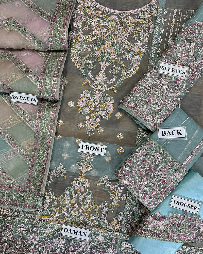 Discover timeless elegance with the Kanwal Malik Unstitched , designed with premium organza fabric and satin silk trouser. Adorned with delicate adda and sequence work, this suit is perfect for weddings, festive occasions, and luxury gatherings.