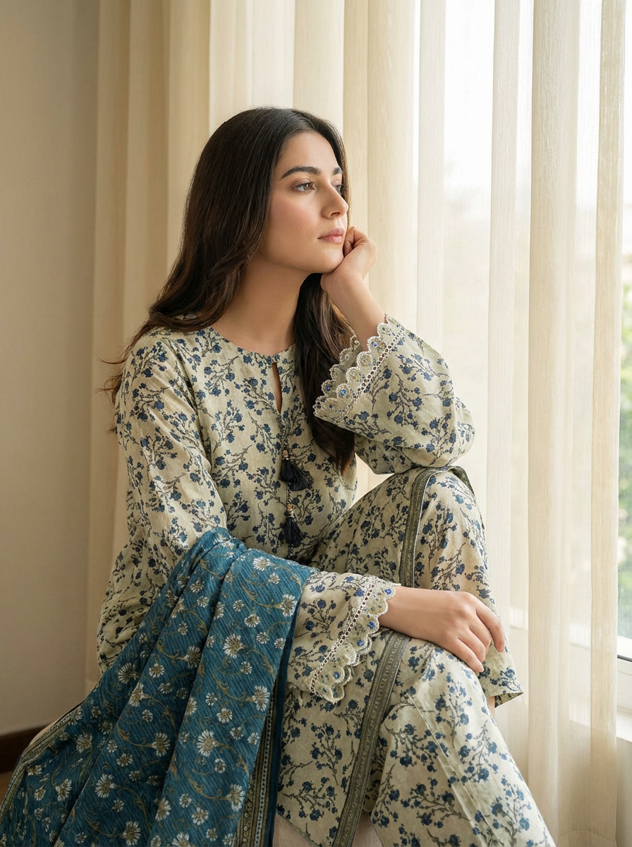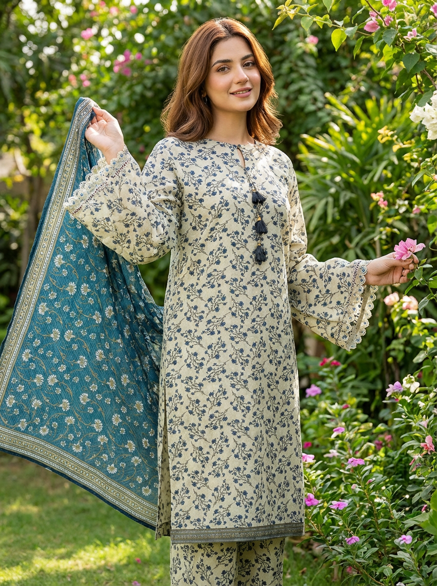 Upgrade your summer wardrobe with this luxury printed lawn 3 piece suit, designed for women who love comfortable yet stylish ethnic wear. Perfect for summer casual wear, semi-formal gatherings, and everyday elegance, this outfit blends breathable fabric with modern prints for a fresh seasonal look.