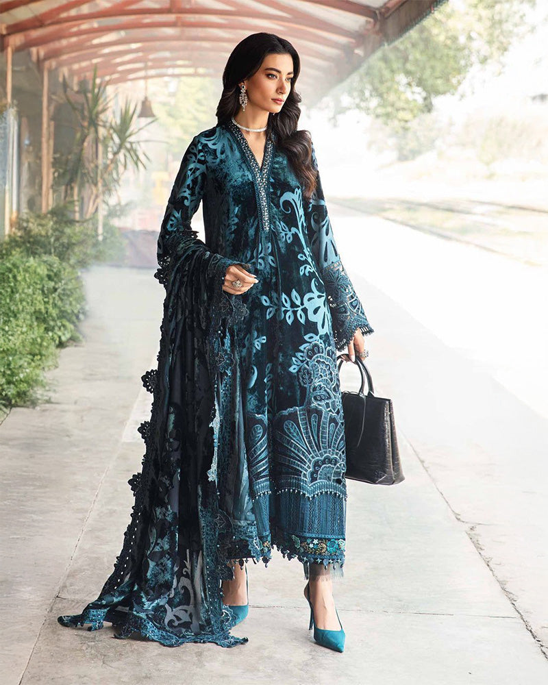 The Maria B Velvet Palachi Collection 2025 redefines festive luxury with its exquisite craftsmanship and timeless elegance. Crafted from rich palachi velvet and detailed with intricate sequin embroidery, this outfit is perfect for winter festivities, weddings, and evening occasions.