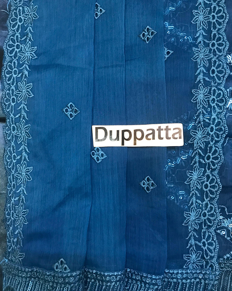 Upgrade your festive and formal wardrobe with the Azure Imperial Midnight — an elegant Pakistani embroidered chiffon dress designed for timeless sophistication. This unstitched 3 piece suit for women features premium chiffon, intricate embroidery, and rich details that make it a must-have for your next event.